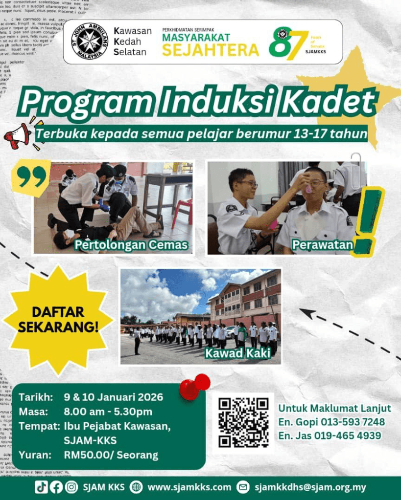 Tempat: Ibu Pejabat, St. John Ambulans Malaysia, Kawasan Kedah Selatan.